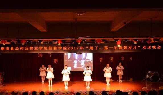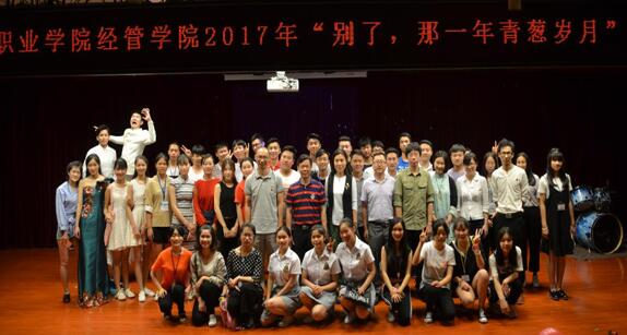 晚会先由特邀嘉宾民政学院的Cancer乐队用青春洋溢的歌曲点燃全场气氛,在经管学院院长罗翀的致辞中拉开序幕。一段朗诵《老师,您辛苦了》让我们感受到了师生的温馨情怀,一首首回忆校园生活的曲子,三五小品,一段段歌舞,用一颗赤子之心演绎我们对未来的憧憬和对校园生活的不舍,《别了,我的大学》更是催动了许多人的泪水。晚会在李光锋和唐荣华副校长对17届实习生的祝福声中落下帷幕,取得圆满成功。