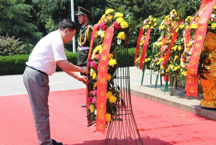 机关党总支全体党员从刘少奇故里门楼广场中门进入,步入苍松翠柏掩映下的百级台阶,集合在绿树成荫的铜像广场,举行向刘少奇同志铜像敬献花篮仪式。学校党委书记杨文伟在刘少奇同志铜像前整理花篮缎带,并合影留念。全体党员来到刘少奇同志纪念馆,参观了《伟大的探索者·卓越的领导人——刘少奇同志生平业绩陈列展览》;瞻仰了山清水秀、鸟语花香、树木参天的炭子冲国家重点文物保护单位——刘少奇同志故居。