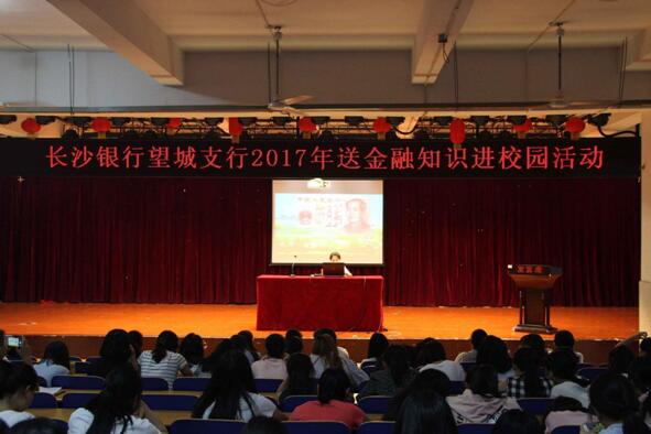 为进一步教育引导我校学生增强金融风险防范意识和金融安全意识,提升自我保护能力,积极响应«中国银监会共青团中央教育部关于开展送金融知识进校园活动的通知»,我校团委与长沙银行望城支行展开积极合作,于5月26日晚多功能报告厅开展了“金融知识进校园”专题讲座。校团委学生会干部及各班代表参加了本次讲座。