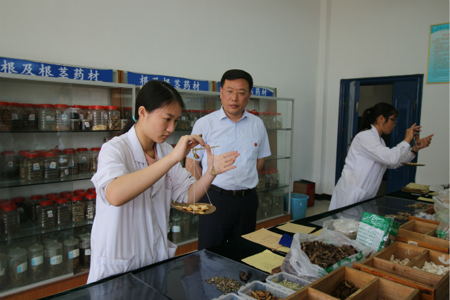 2017年全国职业院校技能竞赛(高职组)中药技能竞赛开赛在即,近日,党委书记杨文伟多次来到学院实验楼培训场所视察参赛选手训练情况。