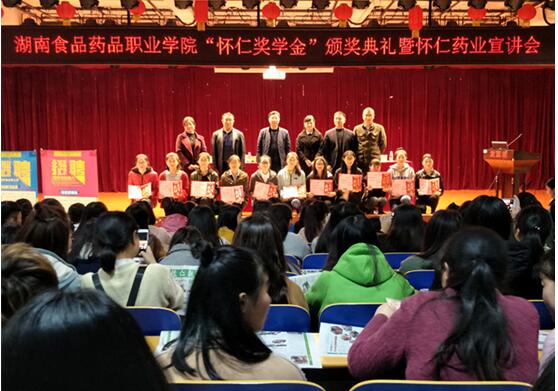 3月29日,湖南怀仁大健康产业发展有限公司资助我院大学生奖学金颁发仪式在我院多功能报告厅举行。学院副院长唐荣华、怀仁企业人力资源总监黄春芳,药学院、中药学院总支书记及相关嘉宾出席仪式。