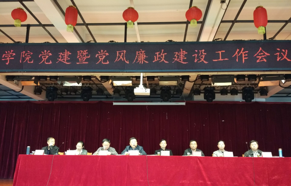 4月1日下午,学校在多功能报告厅召开党建暨党风廉政建设工作会议,全体校领导、各党总支书记、中层干部、全体党员参加会议,党委书记杨文伟、纪委书记吴明军分别作报告,会议由党委副书记、副校长李光锋同志主持。