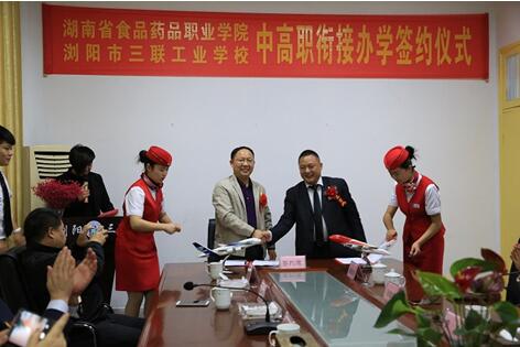 4月10日,学院党委书记杨文伟与副院长邓兴国携党政办、招生就业处、药学院负责人一行前往浏阳与浏阳市三联工业学校正式签约,双方将合作实施中高等职业教育衔接办学、“3+3”对口升学人才培养的模式,实现职业教育资源共享、优势互补的同时,对接浏阳经济开发区食品药品企业实际用人需求。浏阳市教育局副局长黄朴、浏阳市三联工业学校董事长田德清参加签约仪式。