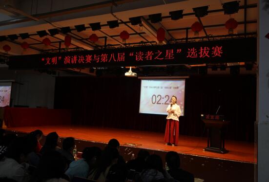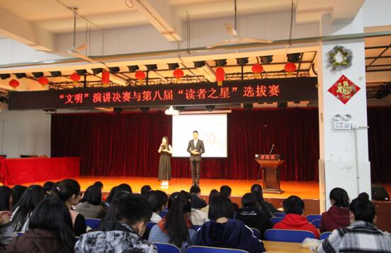 为了加强同学们的自我意识,改善校园一些不文明行为,增强同学们的责任感,自信心与荣辱感,由读书协会特举办了以“文明”为主题的演讲决赛。同时也为了加强各高职院校学生之间的读书交流,共同建设书香社会,由图书馆主办第八届“读者之星”选拔赛。