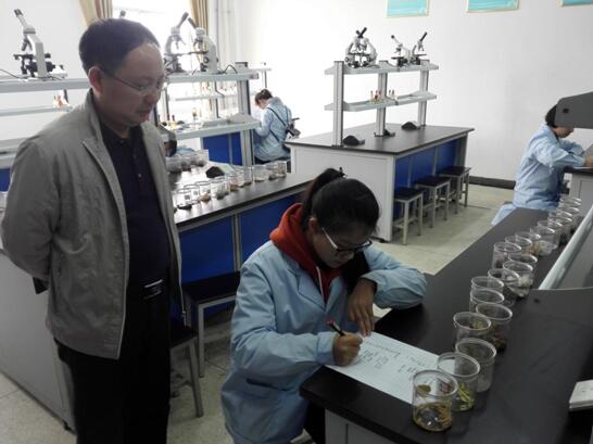 学生进行中药真伪鉴别操作