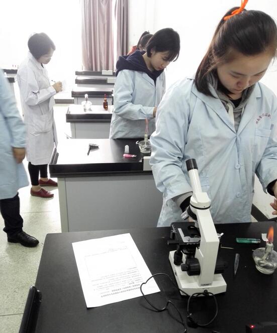 学生进行中药显微鉴别操作