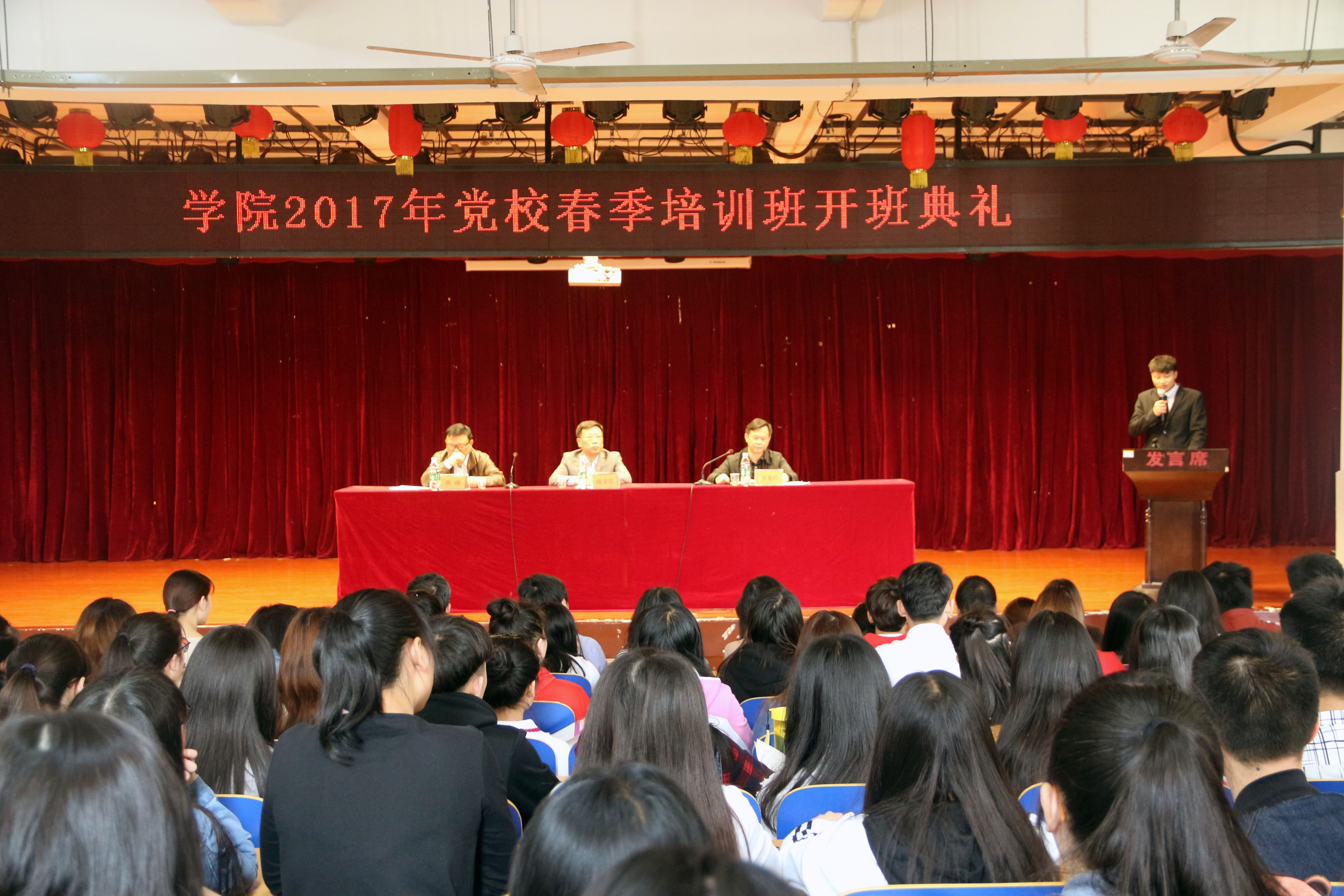 4月15日,学校党校2017年春季培训班在多功能学术报告厅举行,学校党委书记杨文伟出席典礼并讲话。学校组织人事处处长、党校常务副校长欧健作工作安排,入党积极分子代表进行表态发言。各党总支(直属支部)书记、党校校务委员会相关人员及135名培训学员参加了开班典礼,典礼由党委副书记、副院长、党校校长李光锋主持。