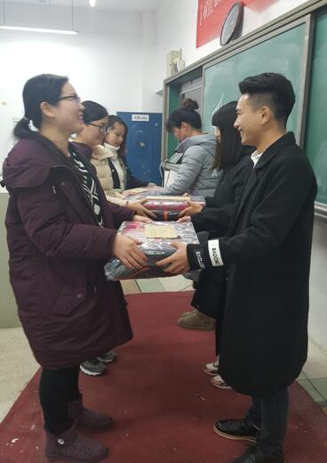 根据“两学一做”学习教育总体安排,为深入贯彻落实学院关于结对帮扶困难学生的文件精神,1月3日下午,经管系党总支对结对帮扶的王丹、桂雪花、李杰3位同学开展了献爱心、送温暖活动,将“爱心款”、老百姓大药房连锁股份有限公司捐赠的床品四件套和澳大利亚华侨魏兆祺夫妇捐赠的御寒冬衣送到了他们手中。