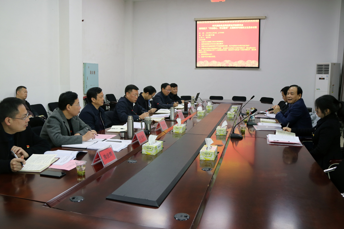 12月3日,我校召开领导班子“不忘初心、牢记使命”主题教育专题民主生活会。会议紧扣学习贯彻习近平新时代中国特色社会主义思想这一主线,聚焦“不忘初心、牢记使命”这一主题,突出力戒形式主义、官僚主义这一重要内容,围绕理论学习有收获、思想政治受洗礼、干事创业敢担当、为民服务解难题、清正廉洁做表率的目标,按照习近平总书记关于“四个对照”“四个找一找”的要求,盘点收获、检视问题、深刻剖析。省委第十五巡回指导组副组长王鹰柏、组员王慧芳、易光伟到会指导。学校党委班子、校级领导出席会议,党政办、纪检监察室等部门负责人列席会议。会议由党委书记杨文伟主持。