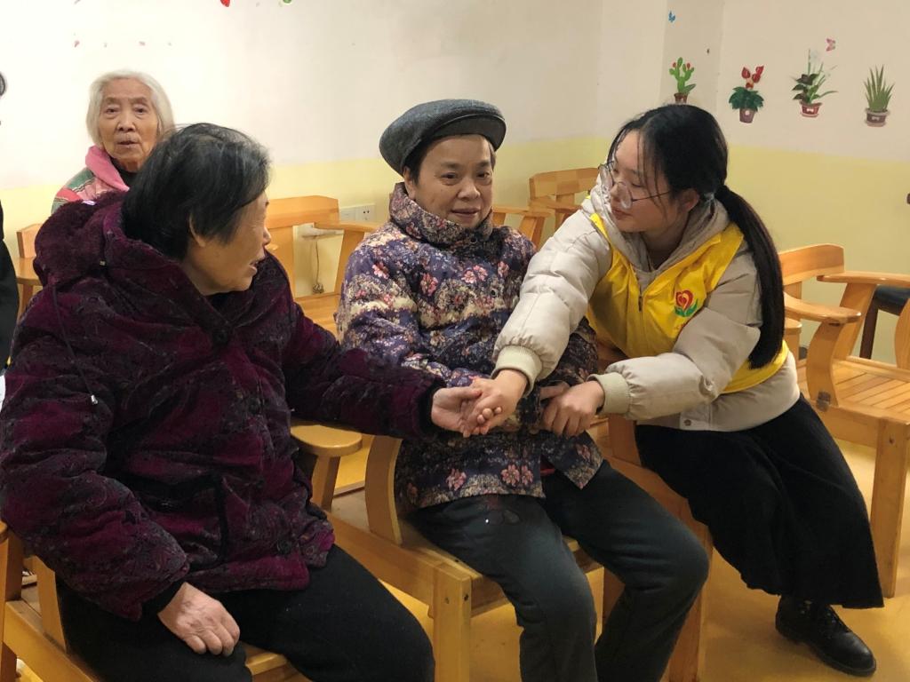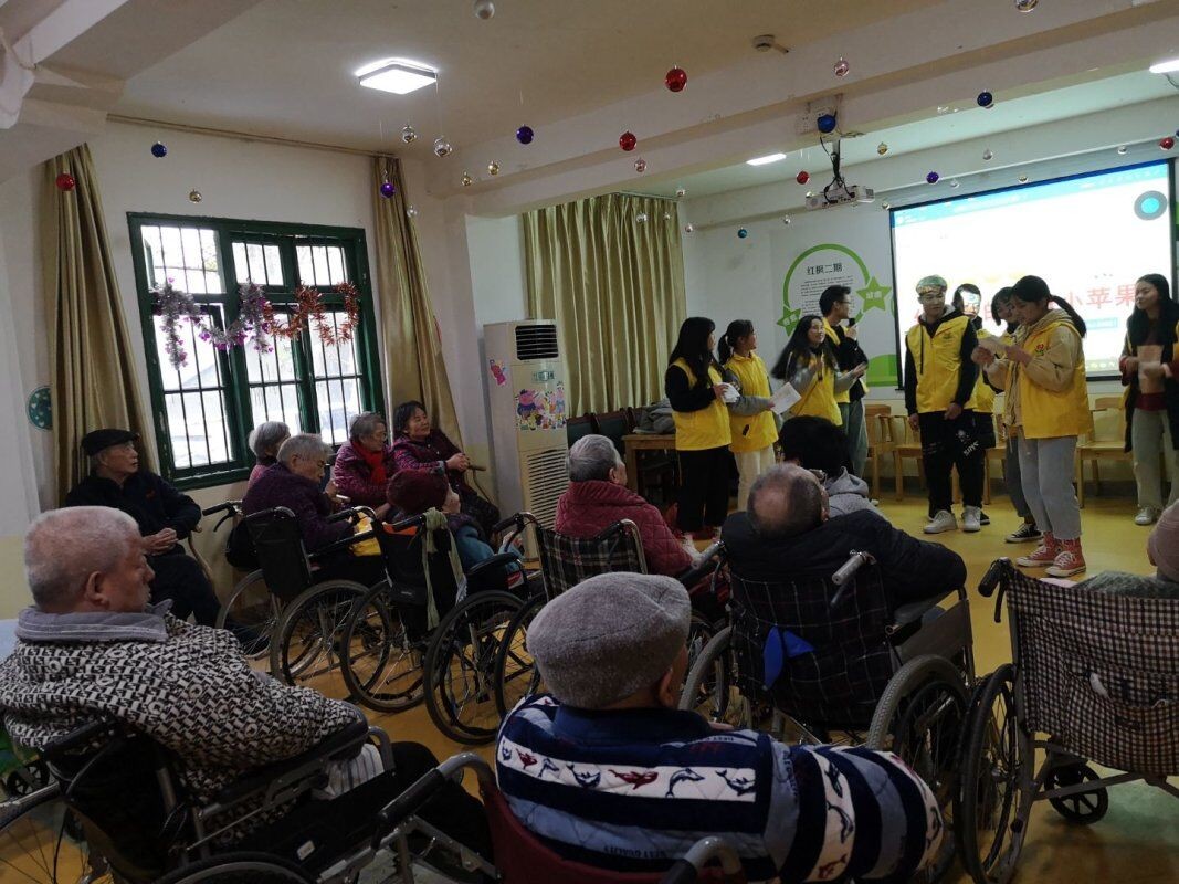 阳光灿烂送温情,莘莘学子意浓浓。在我校开展心理健康周活动期间,12月13日下午,心理健康教育中心吴晓芸老师带领校心理协会成员、朋辈心理辅导员共计29名同学前往红枫康乐养老中心开展“情暖冬日 与爱同行”看望慰问老人活动。