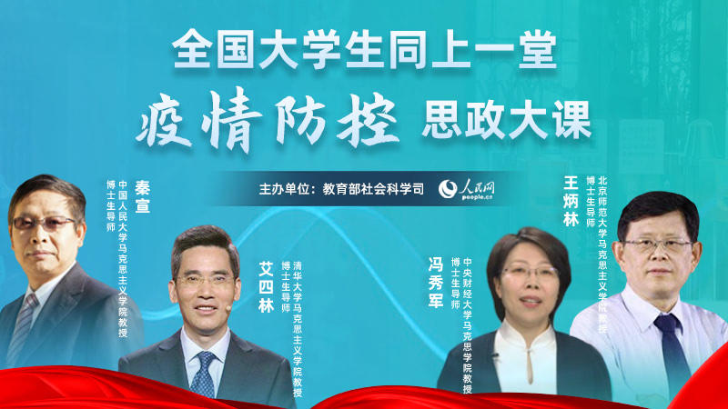 本次思政大课由清华大学艾四林、中国人民大学秦宣、北京师范大学王炳林和中央财经大学冯秀军四位教授主讲,他们解读了以习近平同志为核心的党中央关于疫情防控的决策部署,分析了中国抗疫彰显的党的领导和中国特色社会主义制度的显著优势,讲述了防疫战疫一线的感人故事,勉励广大青年胸有大志、心有大我、肩有大任、行有大德。