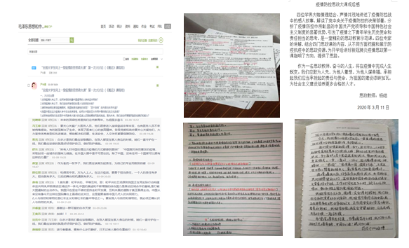 这堂有理有据、有深度有温度的思政大课在我校引起强烈反响。全体师生踊跃地在学习通、QQ群等平台晒笔记、发留言、谈观感。在师生互动、生生互动中的过程中,思想政治教育效果进一步延伸到课外,在疫情防控的特殊时期起到聚人心、强信心的作用。