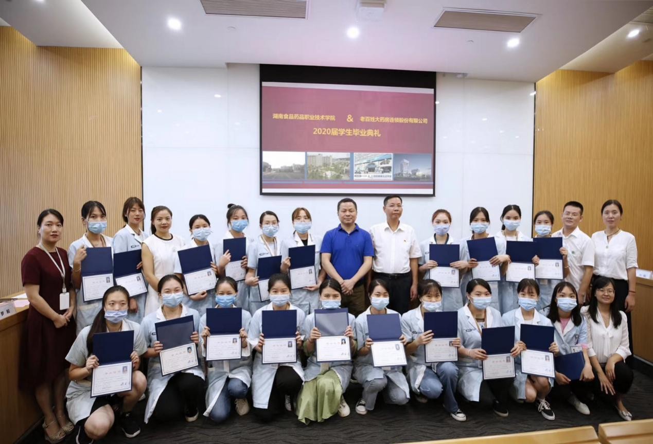 因处于新冠疫情群防群控特殊时期,在老百姓大药房连锁股份有限公司的倾情支持和鼎力协助下,学校首次将毕业典礼选址校外举行。6月30日下午,经管学院2020届校企合作订单培养的“老百姓”班毕业典礼在老百姓大药房连锁股份有限公司举行。