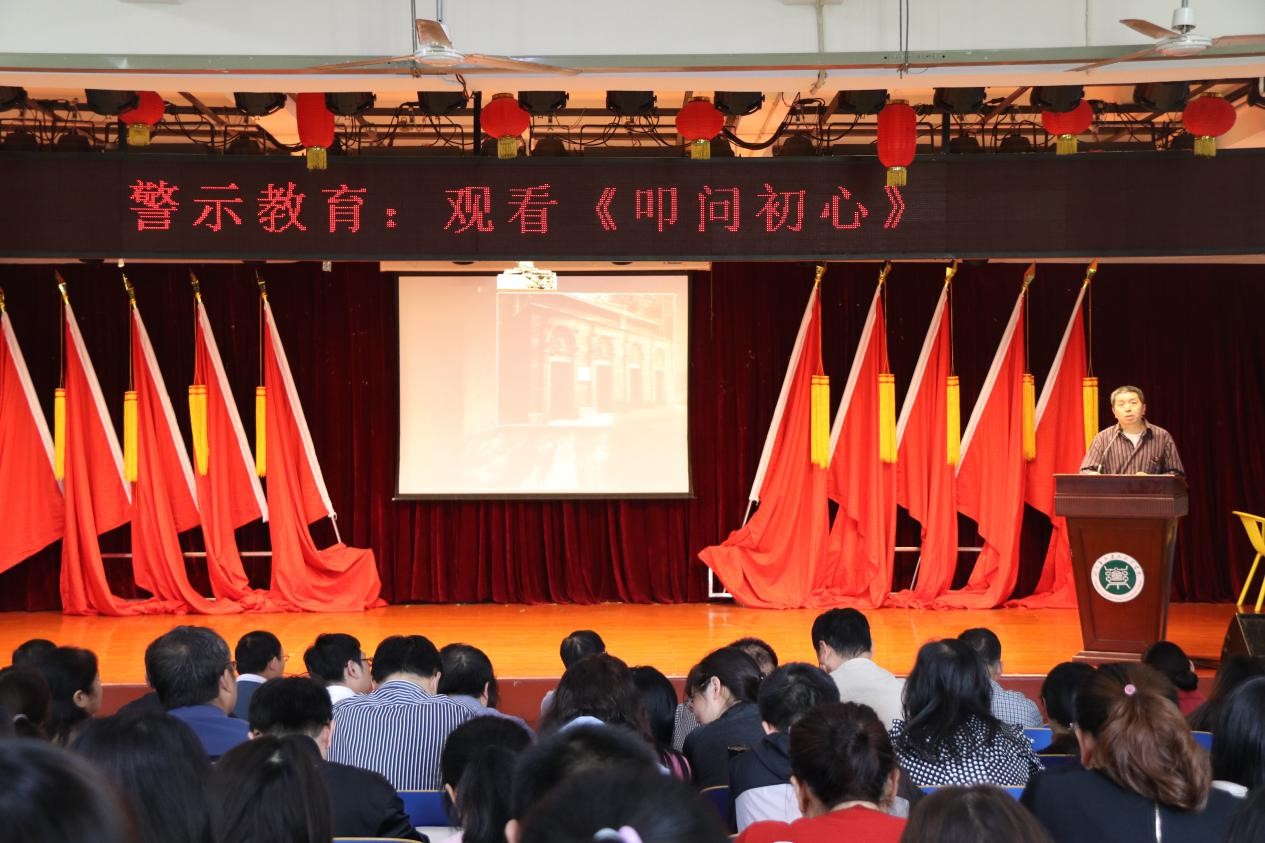 为进一步加强党风廉政建设,筑牢党员干部拒腐防变的思想防线,切实增强党员干部的宗旨观念和廉洁自律意识,结合学校十月份主题党日安排,10月13日下午,学校组织中层及以上干部、全体党员进行了一次警示教育。