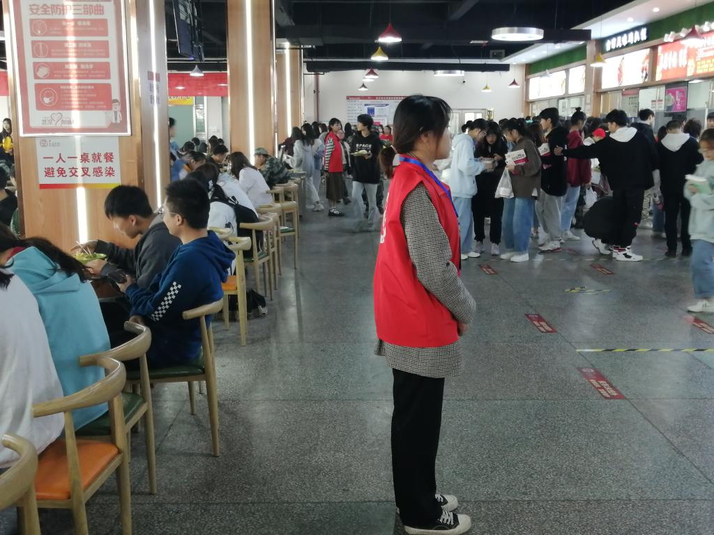 (文明餐桌志愿者执勤现场)