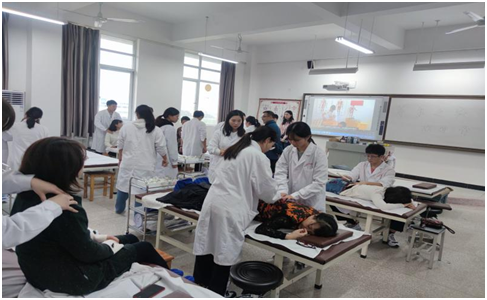 为培养学生学习兴趣,提高专业技能,弘扬传播中医药文化,用专业知识服务于全校广大师生。2020年10月27日下午4点,由我校郑慧芝、邓多喜、柏博三位老师指导,中医养生保健专业学生创建的“养生之家兴趣小组”在新实验楼505开展了第一场养生体验活动。此次活动开展前,“养生之家兴趣小组”在全校范围进行了宣传,引起了不少老师和同学的关注,活动正式开始后,实训室床位躺满了前来体验的老师和同学。兴趣小组的同学先了解体验者的身体情况,然后开始了相应的理疗,有的推拿、有的做艾灸、有的拔罐......,现场各种中医养生技术有条不紊地进行着。