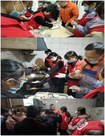 活动现场,志愿者们和精障人士一起揉面团、擀饼坯。在制作的过程中时刻关注着他们,防止烫伤。制作间隙,还为他们唱校歌、表演才艺。在欢声笑语中,香喷喷的油饼诞生了。