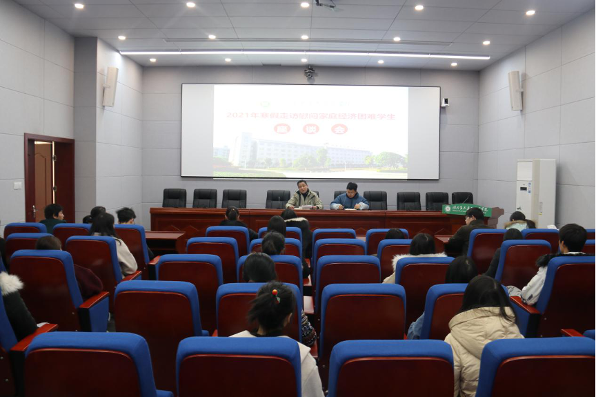 寒假将至,为把党和国家对家庭经济困难学生的关怀落实落细,确保将学校的温暖和关爱及时送达给最需要的同学,学生资助管理中心于2021年1月14日在图书馆视频会议室召开今年寒假走访慰问家庭经济困难学生座谈会。学生资助管理领导小组办公室主任黄军华、相关教师、各二级学院资助干事及受助学生参与座谈。本次座谈会由资助管理中心主任戴维主持。