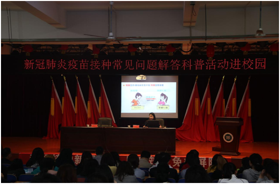为有序推进学校新冠肺炎疫苗接种工作,动员全校师生积极参加新冠肺炎疫苗接种,我校于3月30日下午联合学士街道社区卫生服务中心召开新冠肺炎疫苗接种工作宣讲会,特邀请长沙众义康生物科技有限公司谭佳思女士主讲,学校党委委员、副校长唐荣华主持会议,全体教师及部分学生代表参加会议。