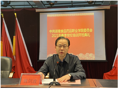 4月17日,中共湖南食品药品职业学院委员会党校2021年春季培训班开班典礼在学术报告厅举行。学校党委副书记、校长虢剑波出席并讲话。党委副书记、副校长、党校校长、工会主席李光锋作培训安排,相关二级学院党总支书、党校工作人员以及223名培训班学员参加了开班典礼。会议由党委委员、组织人事处处长、党校常务副校长熊佳辉主持。