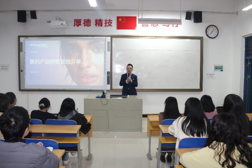 本次比赛选手现场模拟医药产品销售,运用到药理学、药学服务、医药市场营销、商务谈判与推销技巧、商务礼仪等综合知识,与学生今后从事药品学术推广、医药产品销售等岗位对接。比赛前,学院特别邀请到美国艾尔建美学大区经理彭钇玮进行了《医药产品销售实战》专题培训和赛前指导。