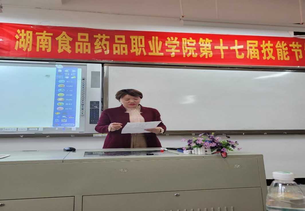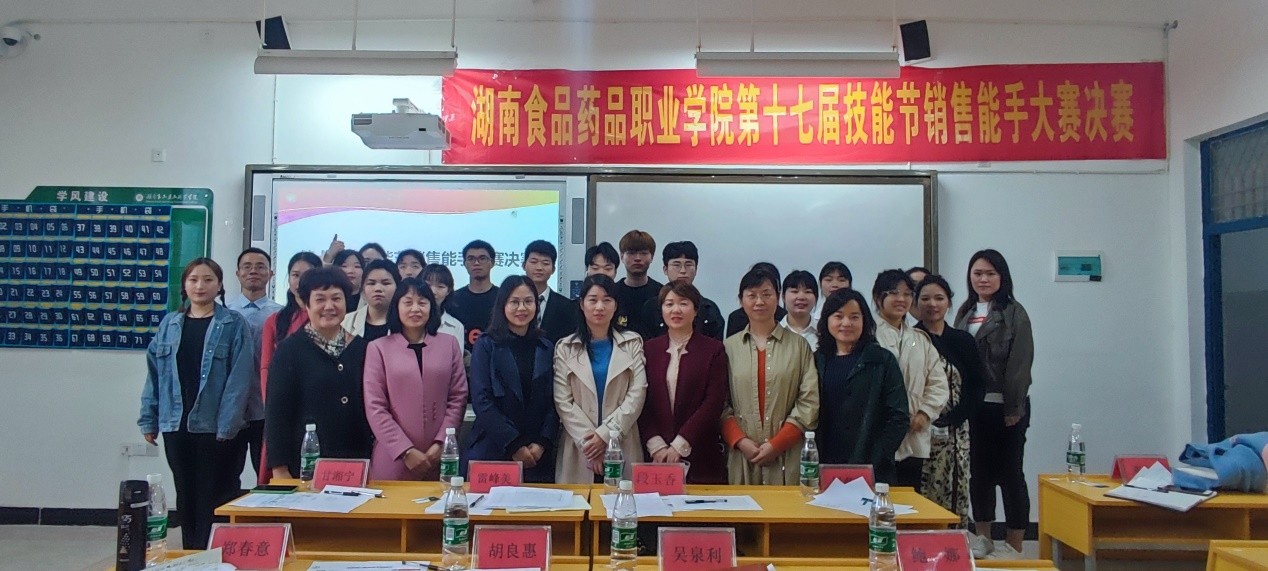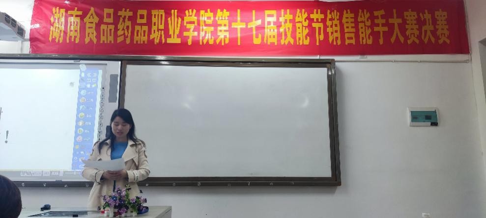 我院第十七届技能节销售能手比赛决赛于4月20日下午在新实训楼403教室进行。本次比赛由经管学院承办,特邀湖南省医药有限公司质量总监雷峰美、老百姓大药房连锁有限公司湘北公司慢病管理专家段玉香作为专家评委。