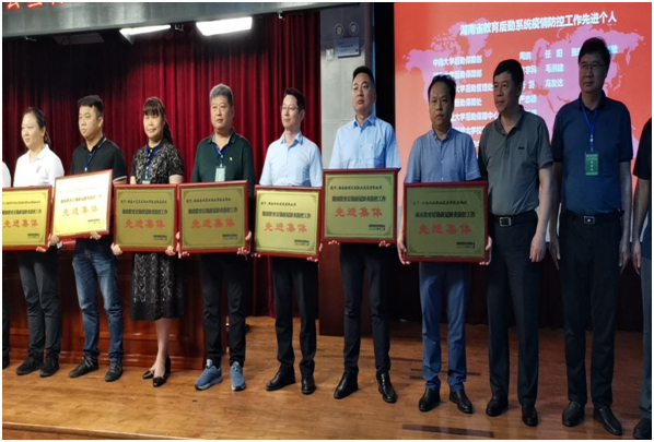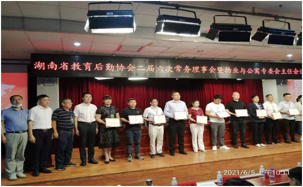 6月5日上午,湖南省教育后勤协会二届六次常务理事会暨物业与公寓专委会主任会议在湖南怀化学院召开,大会上宣读了湖南省教育后勤系统抗疫先进集体和先进个人表彰名单,并举行了隆重的颁奖仪式,我校后勤资产管理处、张帆同志分别荣获湖南教育后勤新冠肺炎防控工作“先进集体”、“先进个人”荣誉称号。