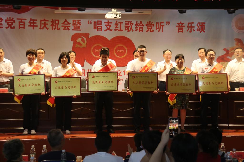 会上,新党员进行入党宣誓,其他党员重温入党誓词。学校领导为四位退休老党员颁发入党五十年纪念章,并为荣获“两优一先”及在学校庆祝建党100周年系列活动中获奖的团体及个人进行颁奖。