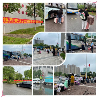 据招生就业处统计数据显示,6月30日和7月1日两天,有近千名实习生前往87家实习单位,本轮实习生到岗工作将持续到7月中旬。超过8成的省内实习单位继续传承派车队来校接实习生的传统。早上7点多就已经有车辆开进校园等候实习生。长沙在结束了一轮久晴高温天气之后迎来短时暴雨降温,校领导、招生就业处和二级学院的老师们护送学生上车,学生们脸上洋溢着期待、快乐、放松、紧张、迷惑……的表情,提着、背着、推着、抱着、扛着一件件早就整理好的行装,准备踏上一段新的征程,迎接全新的挑战。