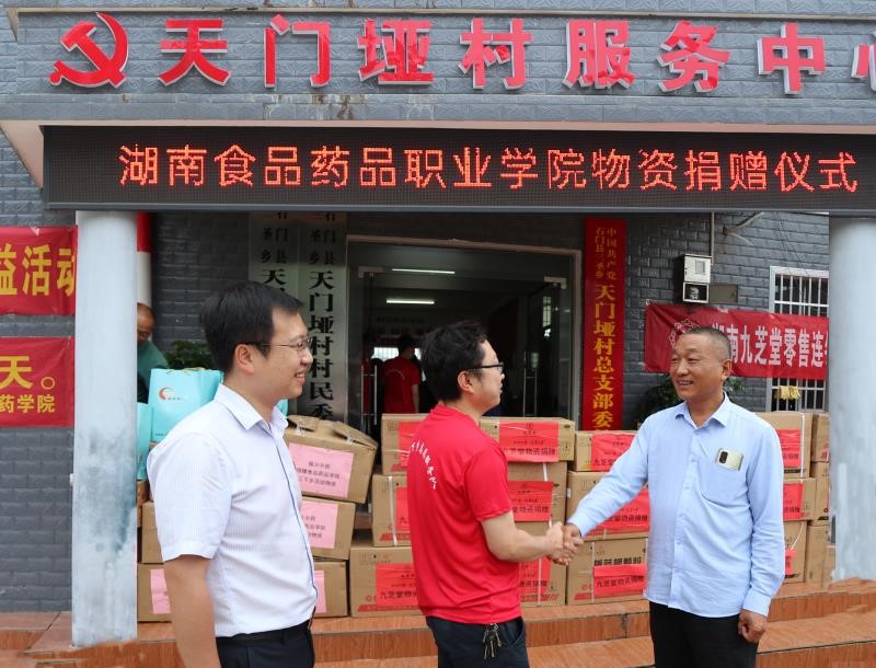 为推动乡村振兴工作,7月1-4日,湖南食品药品职业学院联合九芝堂股份有限公司、湖南振兴中药有限公司、华润湖南瑞格医药有限公司等单位在乡村振兴定点帮扶村天门垭村,开展2021年“三下乡”活动。