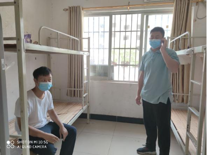 学生宿舍区演练。一宿舍学生发现室友咳嗽、发烧,立即向辅导员汇报,辅导员赶往宿舍,提醒学生带好口罩,保持距离,在确认该生有异常情况下,立即向异常情况应急处理小组相关负责人汇报,并将异常学生以及同寝室学生带往隔离室,等待医护人员将其送往医院做核酸检测。