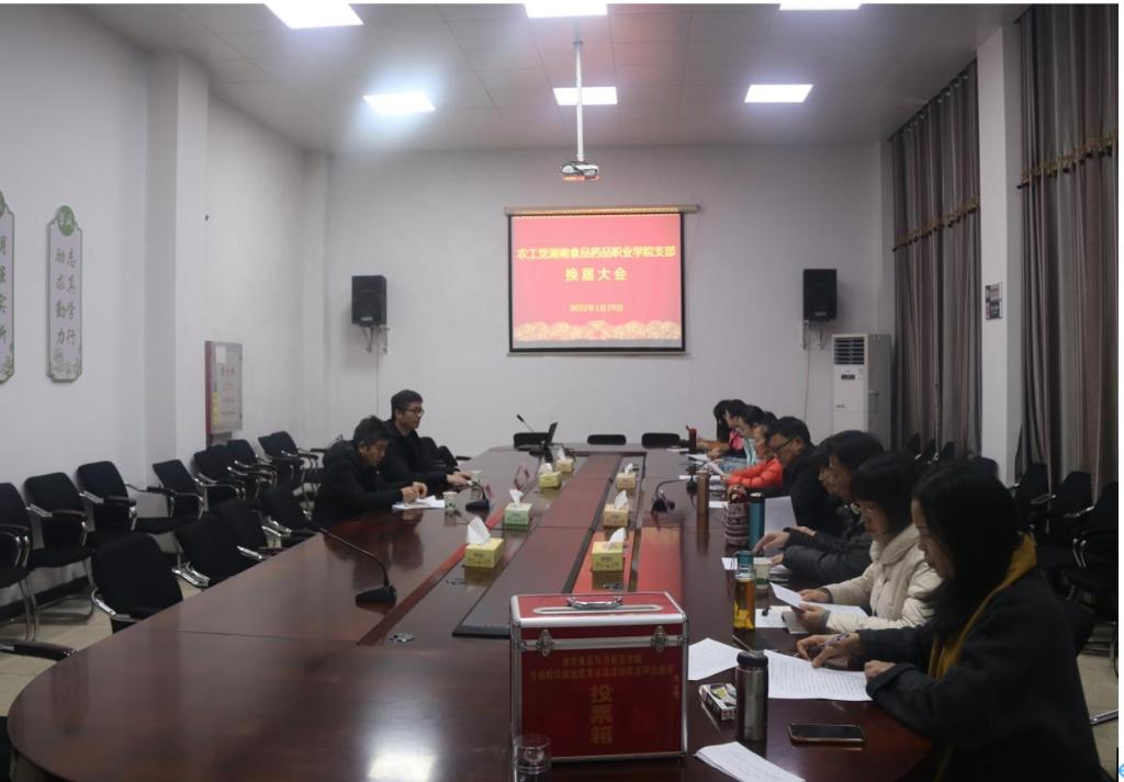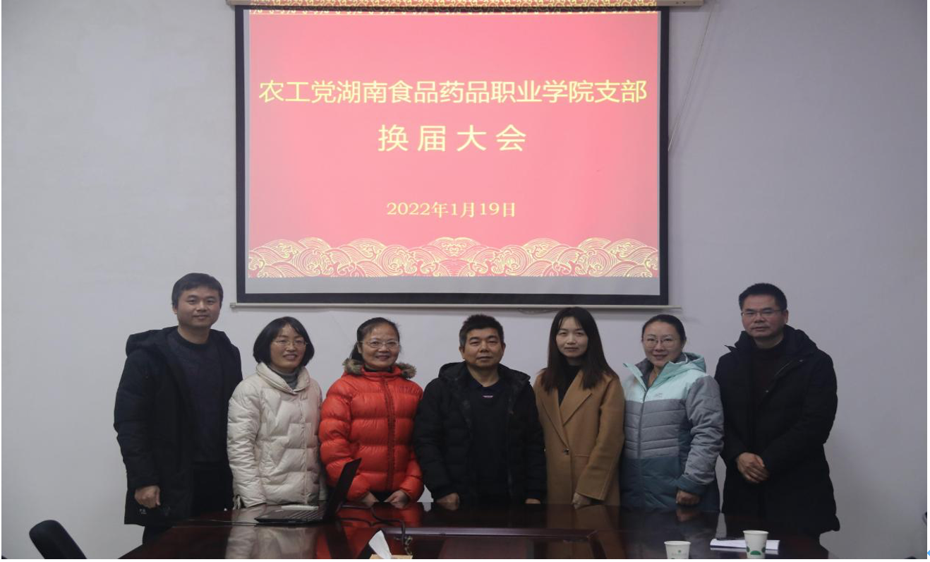 2022年1月19日,农工党湖南食品药品职业学院支部在学校会议室召开支部党员大会,选举产生新一届支委委员。会议由支部主委何怡芳主持。农工党湖南省委会组织处处长邱现平、一级主任科员文武,学校党委委员、宣统部欧健部长参加会议。