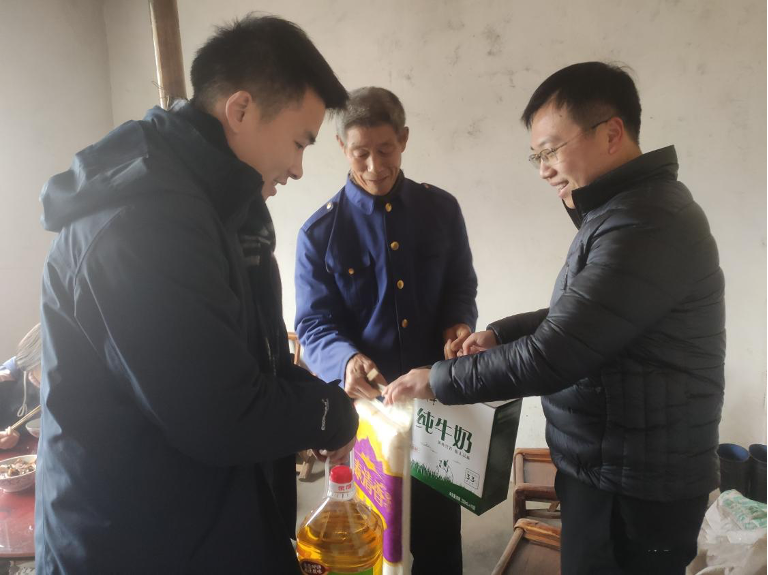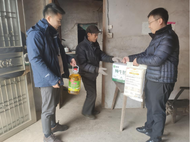 壬寅春节将至,年味渐浓。为巩固脱贫攻坚与乡村振兴有效衔接成效,体现后盾单位的温暖关怀,让困难群众度过一个快乐祥和的新春佳节。2022年1月20日,湖南食品药品职业学院驻天门垭村工作队开展节前走访慰问活动,走访村内困难群众,并送上慰问品和节日祝福。