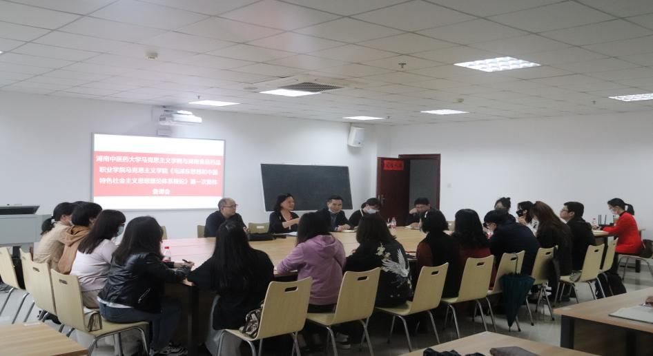 4月22日下午,我校马克思主义学院与湖南中医药大学马克思主义学院在湖南中医药大学马克思主义学院活动室举行了旨在探讨教学经验,提升教师教学能力的《毛泽东思想和中国特色社会主义理论体系概论》(以下简称“概论”课)第一次集体备课活动。本次活动由湖南中医药大学马克思主义学院副院长黄汀主持,两校马克思主义学院的主管领导及思政教师集体参与。