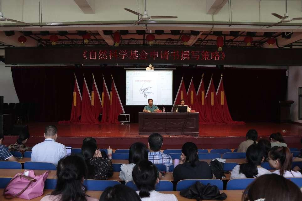 为有效推动我校高层次项目申报,提高自然科学基金项目申报质量,提升教师科研能力与水平,6月7日下午,中南大学“升华学者”特聘教授、中南大学湘雅医院临床药理研究所PI、遗传药理学湖南省重点实验室常务副主任、博士生导师陈小平教授应邀来我校作《自然科学基金申请书撰写策略》专题讲座。党委委员、副校长张雪昀教授主持讲座,全体专兼职教师和专业技术人员现场聆听。
