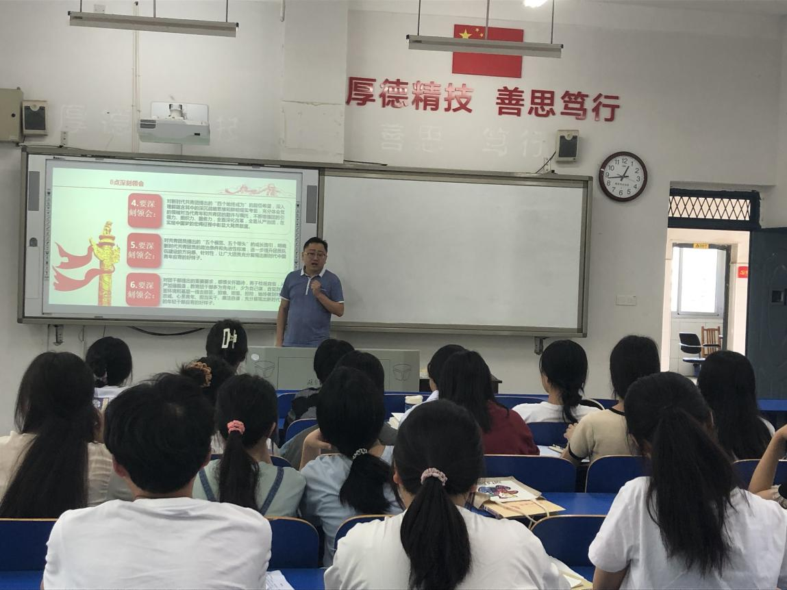 校团委书记熊星尧以学习习近平总书记在建团100周年庆祝大会上的重要讲话精神为题,结合我校团学工作实际给学生干部上了一堂别开生面的主题团课。他特别强调,团学干部要学习好,贯彻好习近平总书记对青年的殷切期望。各部门组织活动以及开展工作要深入到青年中去。贴近青年、走近青年,用青年人喜欢的方式来开展工作。团学干部要不断提升自身综合素质,发挥模范带头作用,要增强责任感和荣誉感。敢战能胜,独挡一面。要紧跟党的步伐,听党话、跟党走,自觉履行作为一名新时代青年的责任与担当。