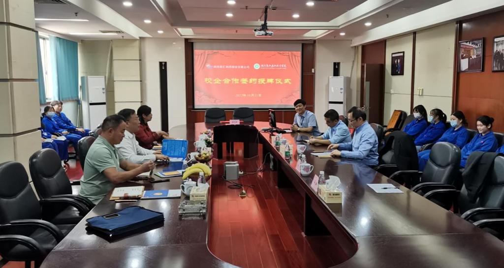 参观结束后,举行“新汇班”订单式联合培养签约暨实习基地授牌仪式。新汇制药总经理何承东、行政人事副总熊龙富等企业相关负责人及我校实习生代表出席签约授牌仪式。企业代表对公司情况及公司以后的发展方向进行了介绍,并充分肯定了我校实习生的表现,实习生对自己的工作生活情况也进行了简要汇报。