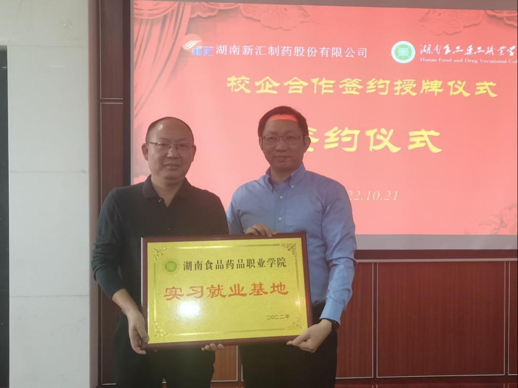 2022年10月21日,学校党委书记杨文伟,党委委员、副校长邓兴国及招生就业处处长李建新、中药学院院长叶云华、副院长代洪波一行赴湖南新汇制药股份有限公司考察调研。