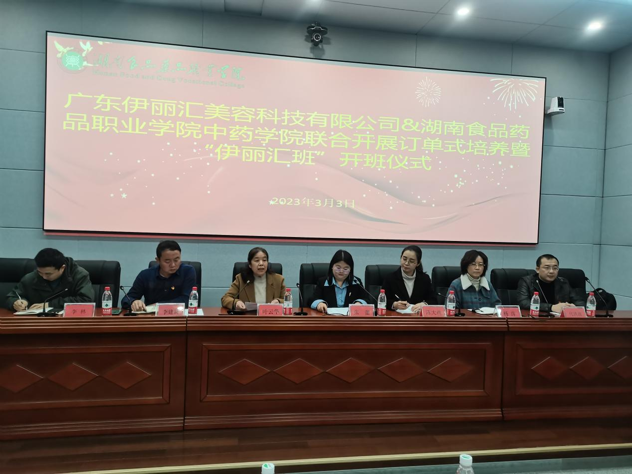 3月3日上午,广东伊丽汇美容科技有限公司与湖南食品药品职业学院中药学院联合开展订单式培养暨“伊丽汇班”开班仪式在我校举行,广东伊丽汇美容科技有限公司校企合作办、人力资源高级经理张蕾、人力资源经理陈大燕参加开班仪式。