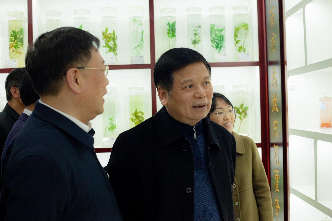 王玉清一行在学院党委书记杨文伟和党委副书记、校长虢剑波的陪同下,参观了校史馆,实地察看中药标本馆、GMP模拟实训室等,详细了解了学院发展历程和办学成效以及存在的困难和问题。