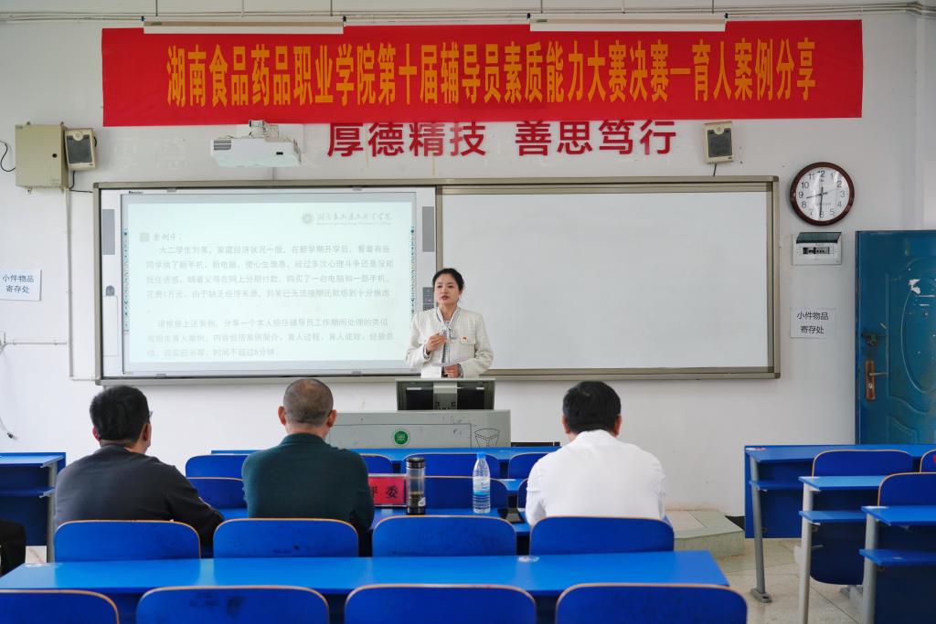 大赛分为初赛和决赛两个环节。4月4日通过初赛选拔,入围的10名辅导员通过育人案例分享、谈心谈话、案例研讨三个环节现场展开激烈角逐。育人案例分享环节中,辅导员们立足工作、总结经验,分享学生日常管理中所处理的各种困惑和难题。谈心谈话比赛环节中,辅导员抽丝剥茧,观察入微,以情景再现的方式疏