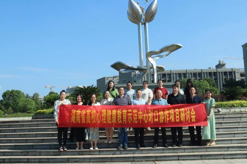 6月7日下午,长沙职业技术学院党委委员李业华一行7人到我校就湖南省高校心理健康教育示范中心对口协作项目进行研讨交流,我校党委委员、副校长邓兴国,学保处处长黄军华及相关教师参加会议。