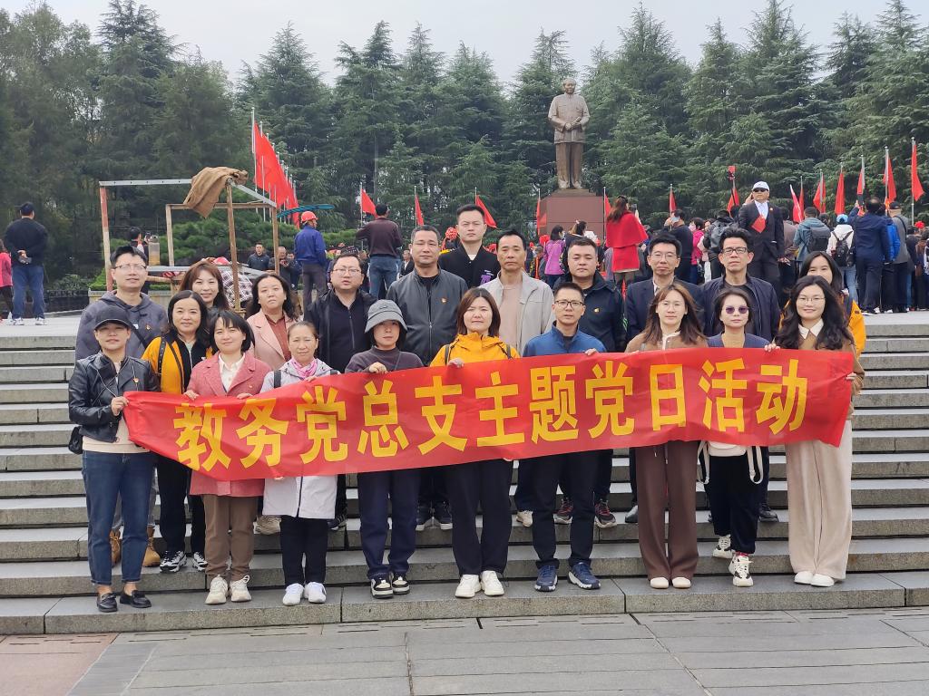为全面学习贯彻党的二十大精神,进一步巩固主题教育成果,引导教务党总支全体党员干部自觉用习近平新时代中国特色社会主义思想武装头脑,进一步坚定道路自信、理论自信、制度自信、文化自信,促进我校高质量发展,结合学校“一月一课一片一实践”活动安排,教务党总支于11月24日组织全体党员赴韶山-花明楼开展“赓续红色基因、奋进卓越一流”实践活动。