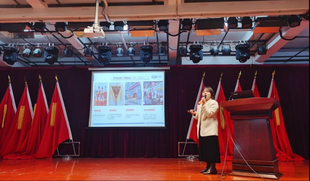 2016届杰出校友、公司商圈经理王晶回顾了7年来在公司的成长历程,阐述公司为个人发展提供的多种机会平台,希望同学们珍惜在校学习和加盟“店长班”机会。