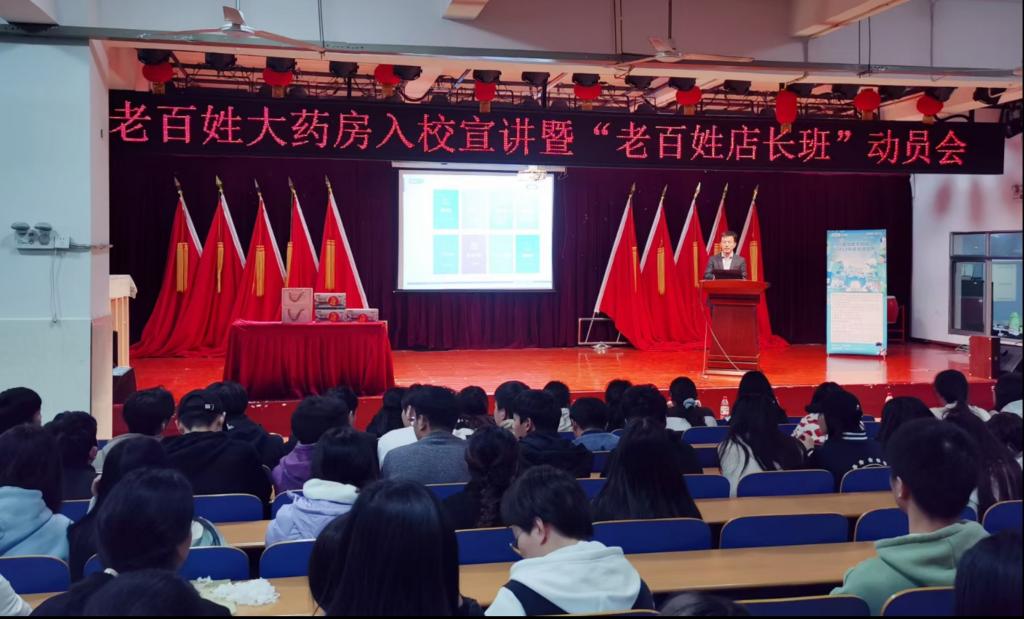 12月7日,我校经管学院积极响应教育部2024届全国普通高校毕业生就业创业工作视频会议精神,邀请老百姓大药房人力资源总监李少华一行,在学校报告厅举行“老百姓大药房入校宣讲暨‘老百姓店长班’动员会”,2022级药品经营与管理专业全体同学参加,经管学院院长刘喜红,副院长邓媚全程参与。