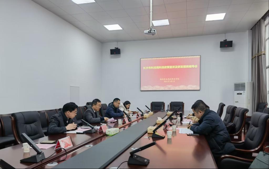 3月5日下午,长沙市科技局党组成员、副局长杨婵一行3人来我校调研。我校党委委员、副校长张雪昀,党委委员、组织人事处处长熊佳辉,科研与发展规划处副处长吴泉利参加调研座谈会。会议由科研与发展规划处处长潘伟男主持。