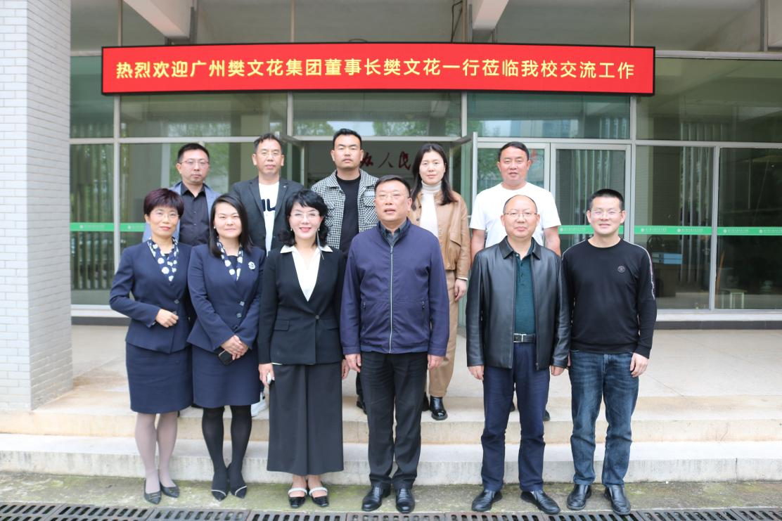 4月10日,广州樊文花化妆品有限公司董事长樊文花一行来学校考察交流,学校党委书记杨文伟、副校长邓兴国出席座谈会并讲话,招生就业处、经管学院等相关部门负责人陪同参加。