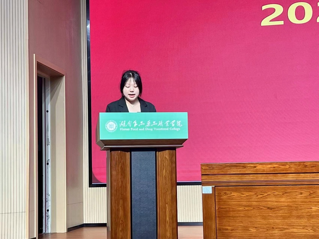 食品学院监管2201班杨世菊同学作为学员代表作表态发言,她借用习近平总书记在党的二十大报告中对青年的寄语,号召入党积极分子们要保持意气风发的精神,以先进模范为榜样,不断学习,用心工作,用最饱满的热情,最全面的投入,最实际的行动来完成接下来的党课学习。