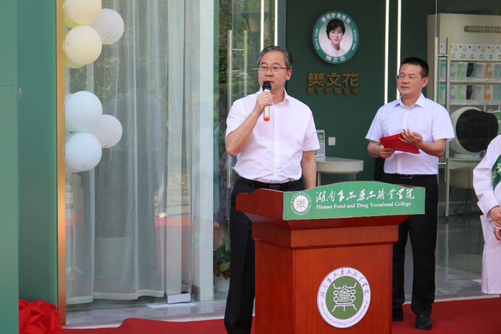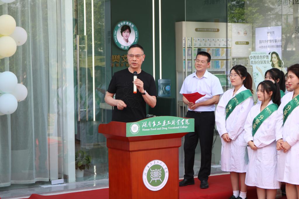 湖南省化妆品经营行业协会会长易敬平,广州樊文花化妆品有限公司董事长樊文花,学校党委副书记、校长虢剑波,学校党委委员、副校长邓兴国及协会、企业、学校师生代表共计60余人共同见证此盛况。仪式由经管学院院长刘喜红主持。