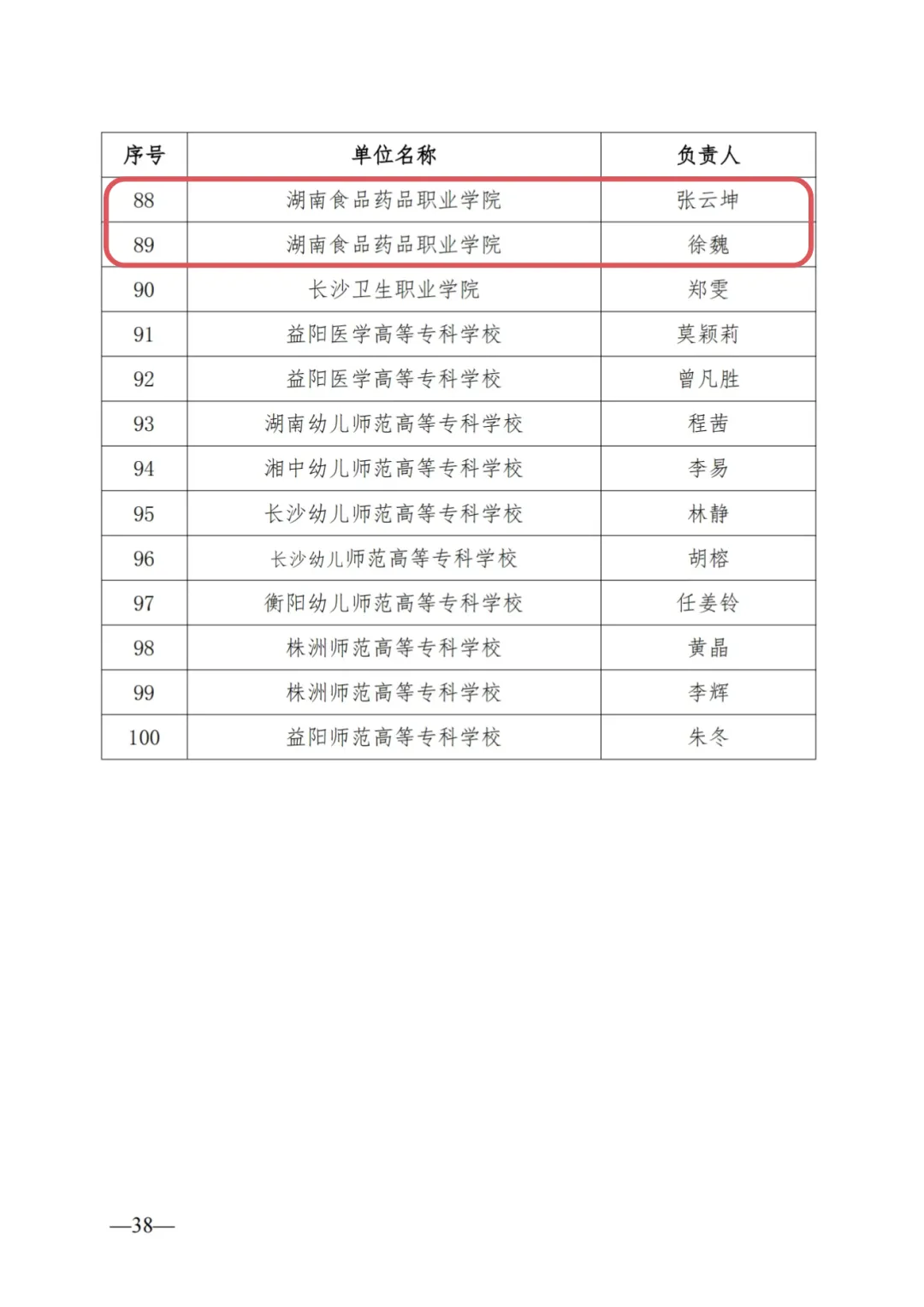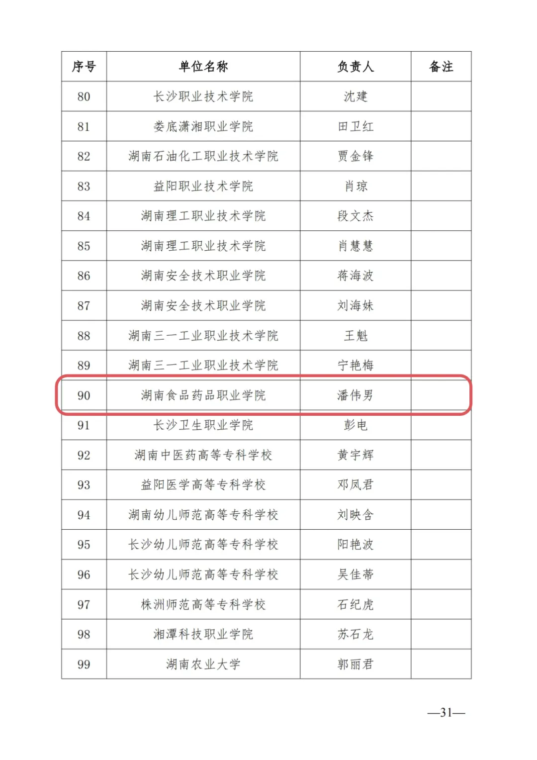 近日,根据《湖南省教育厅关于开展2024年湖南省职业教育“楚怡”教师教学创新团队、名师(名匠)工作室、教学名师申报遴选工作的通知》(湘教通〔2024〕168号)的要求,经项目资格审核及正式评审,我校潘伟男老师负责的工作室入选省高职“楚怡”名师(名匠)工作室;张云坤老师、徐魏老师成功入选省高职“楚怡”教学名师。此次教学团队和个人的成功入选,为我校事业发展注入了新的活力,激励全体教师奋力前行,争创佳绩。
